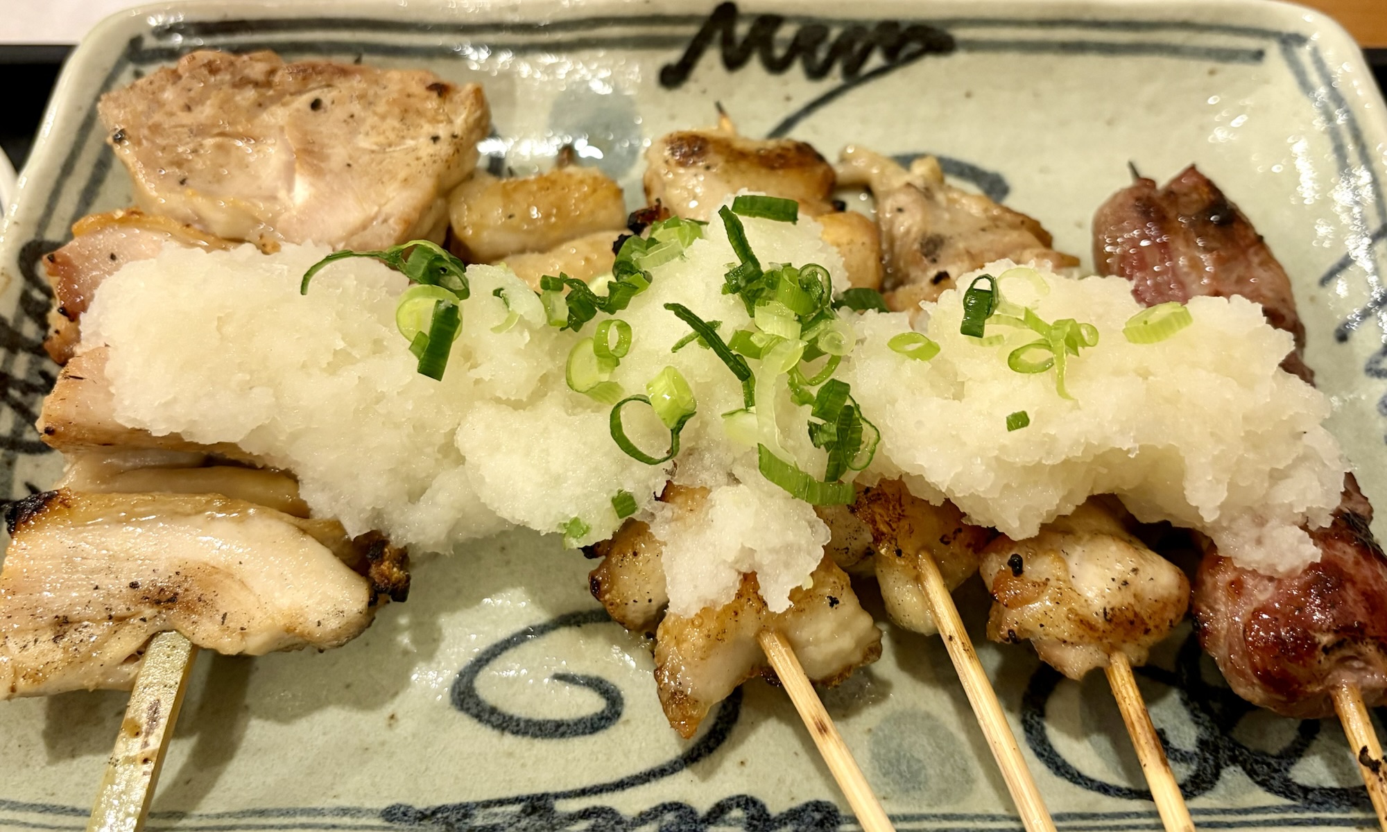 こちらは串5本仕様で、味付けは塩ベース+大根おろしをのせたポン酢スタイル。