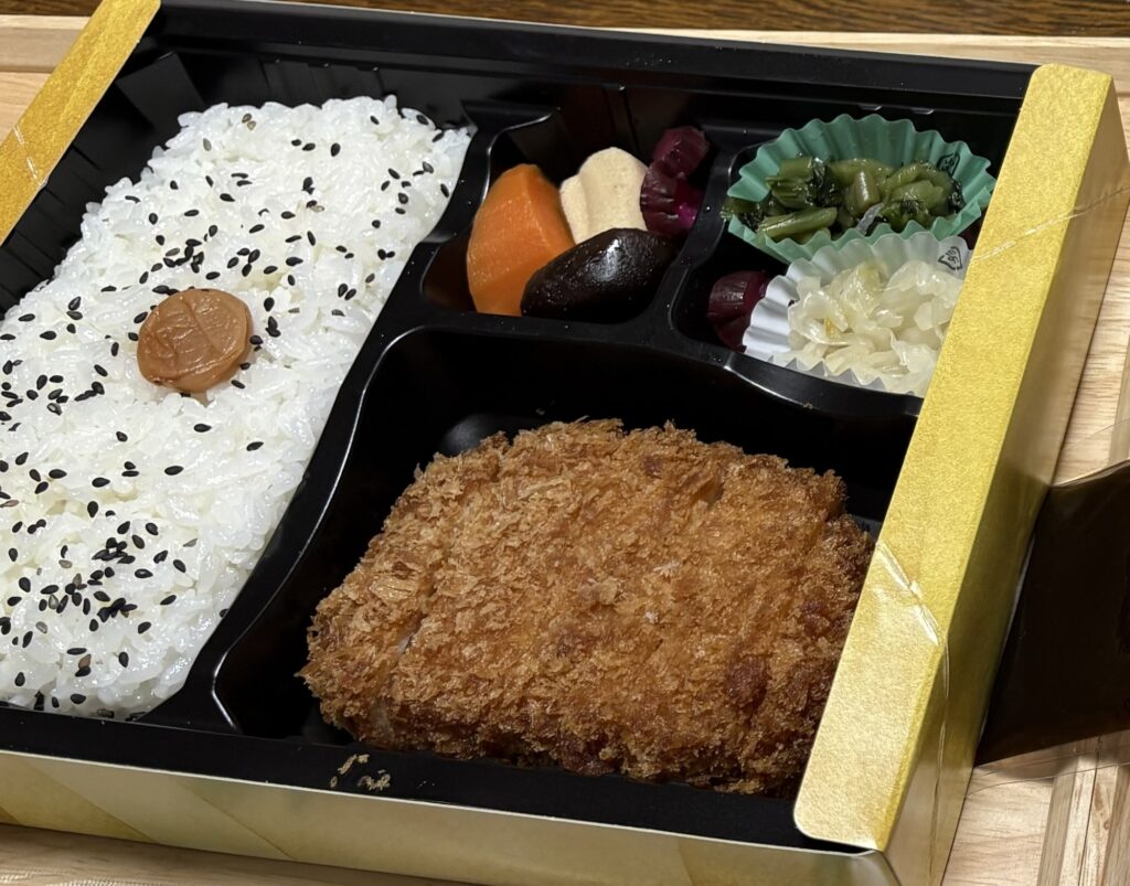 まずは、創業100年以上の老舗「松浦商店」が手がける味噌ヒレカツ弁当。