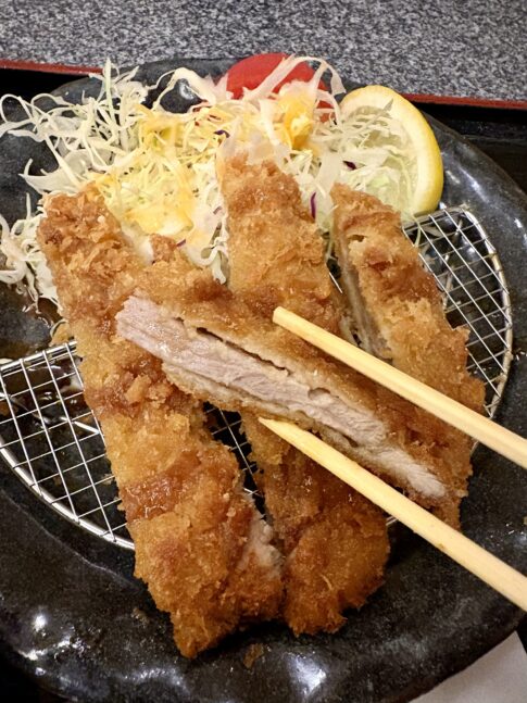 ヒレ肉らしいあっさりした口当たりで、脂の重さがなく、冷めても柔らかさを保っています。ややパサッとした印象もありますが、付属の温泉たまごを絡めることで、まろやかさを追加できます。