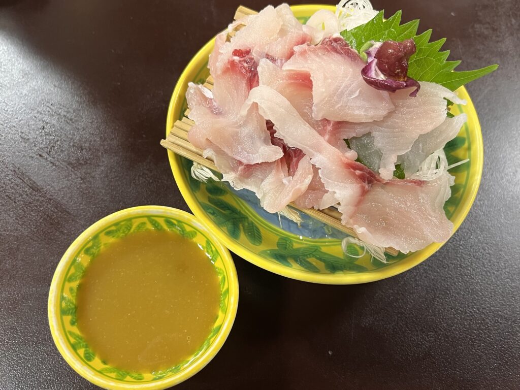 鯉の切り身に、酢味噌をつけてさっぱりと食べます。コリッとした歯ごたえが印象的で、臭みもなく上品な味わいです。うなぎの合間に挟むと、口の中がすっと整うような清涼感があります。