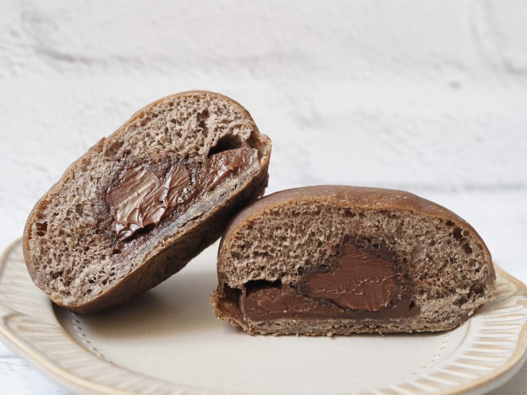中には甘くねっとりとしたチョコクリームがたっぷり詰まっています。パンに塗るチョコスプレッドのような味わいです。