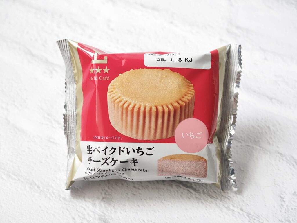 ローソン「生ベイクドいちごチーズケーキ」は、生という名前に納得のとろける口溶けが楽しめるチーズケーキです。