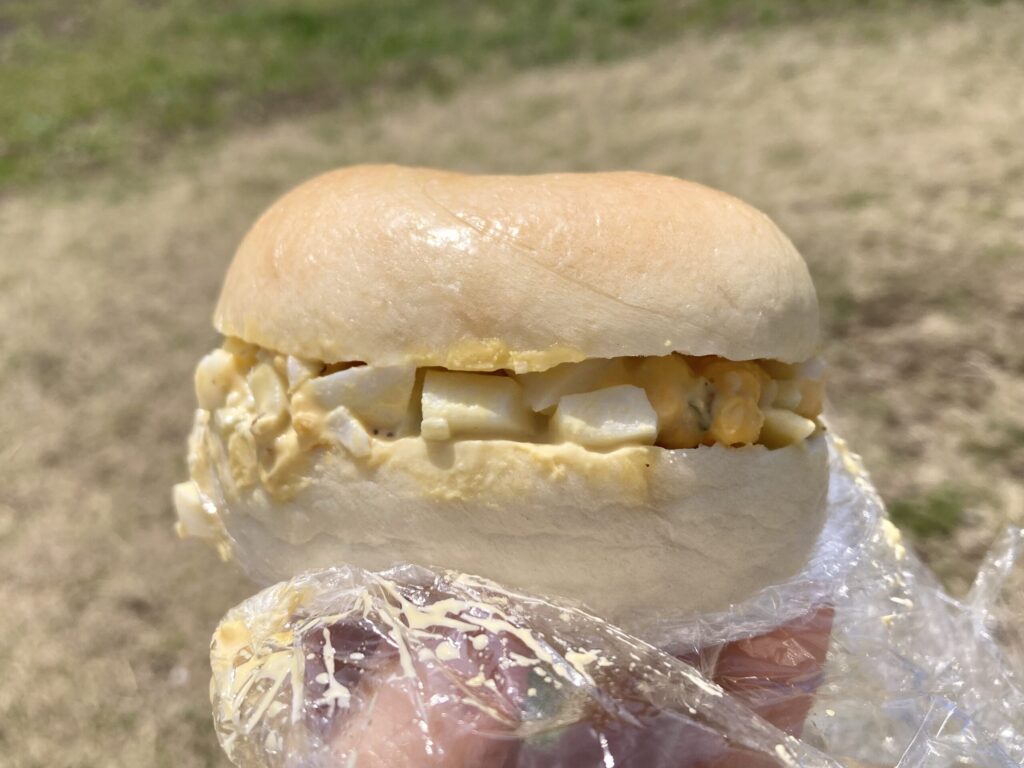 たまごサンドは、プレーンベーグルに卵サラダをサンドしたシンプルな一品。