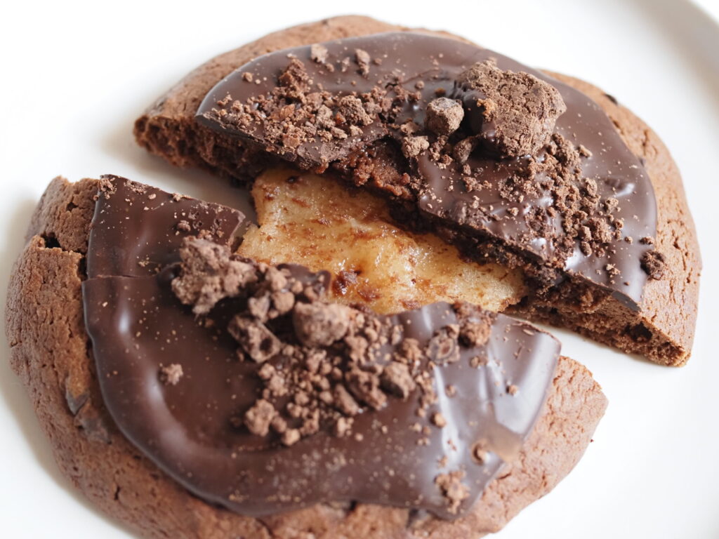 クッキー生地はしっかり甘く、ココアの風味が濃いです。