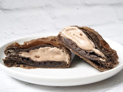 ホットケーキ風の生地には2つの素材がサンドされています。